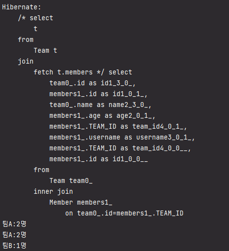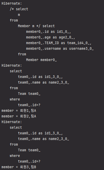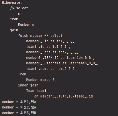 String qeury = "select m from Member m";  //fetch join을 사용하지 않았을 때