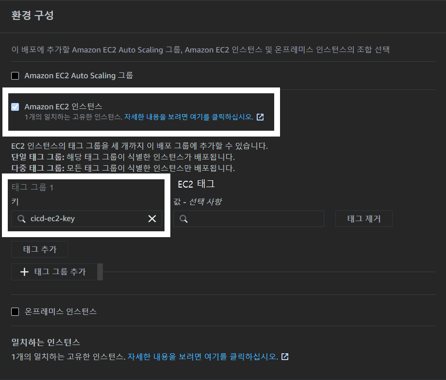 EC2에서 설정한 태그를 환경구성에서 선택합니다.