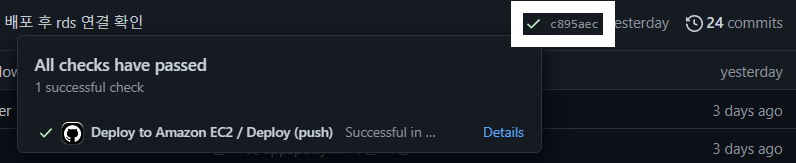master branch에 push가 일어나면 workflow가 실행됩니다.