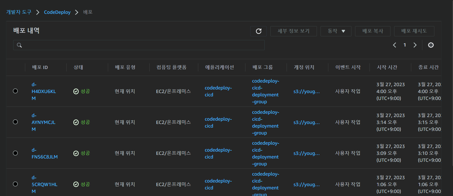 | GithubAction과 CodeDeploy를 활용한 CICD:EC2에 SpringBoot 배포-2(S3 생성,CodeDeploy 생성,IAM 사용자 추가) (0) | 2023.03.28 |