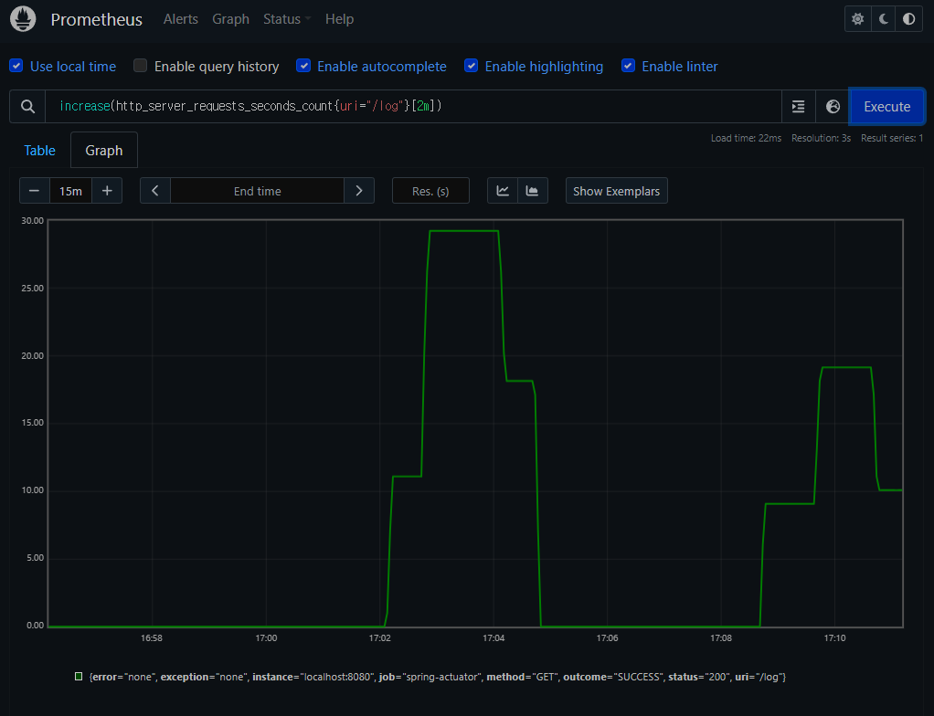 ex) http_server_reequests_seconds_count(1m)