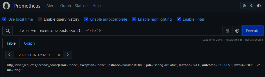 ex) count( http_server_reequests_seconds_count)