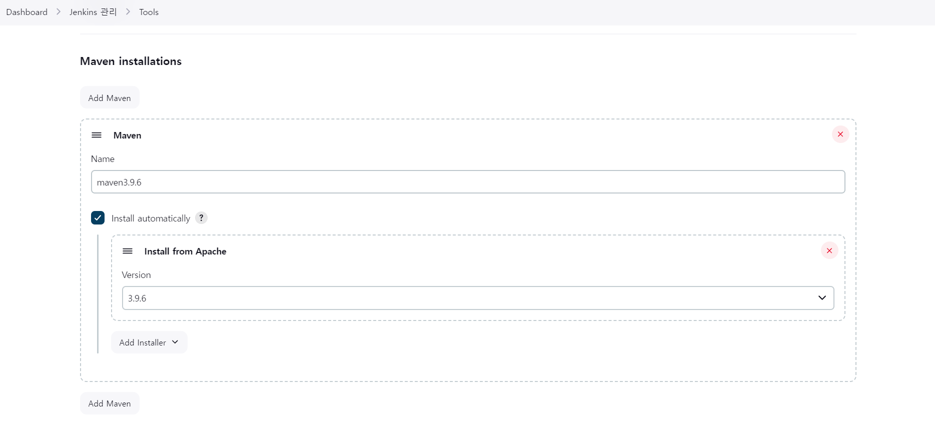 jenkins관리 -> Tools에서 maven Installations를 등록해줍니다.