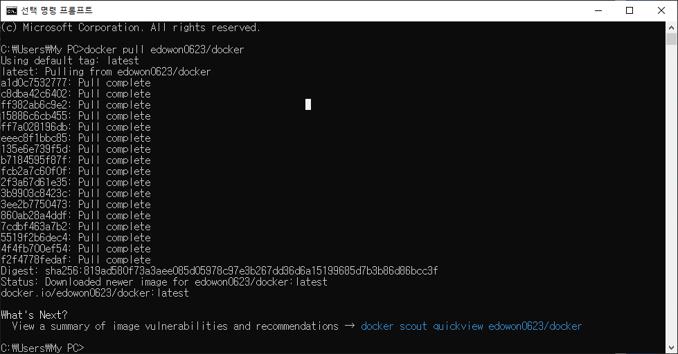 위에서 다운 받은 이미지를 docker로 실행시켜줍니다.