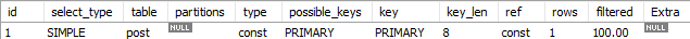 explain select * from springdb.post where springdb.post.post_id = 198;