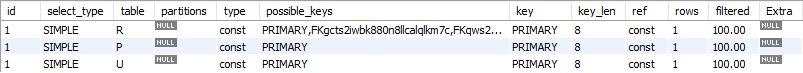 explain select * from springdb.request as R join springdb.post as P on P.post_id = R.post_id join springdb.user U on U.user_id = R.user_id where R.request_id = 291;