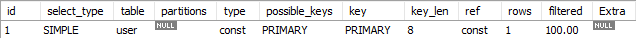explain select * from springdb.user where springdb.user.user_id = 99;