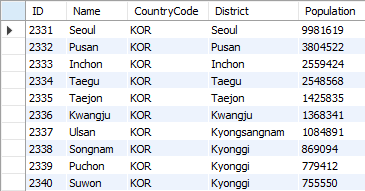 show create table city쿼리를 날려 결과값을 얻어 create table 구문을 이용하여 city_kor 테이블을 만든다. 그 후 insert into select 구문을 이용하여 city_kor에 한국 도시들을 넣은 후 출력하였다.