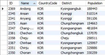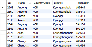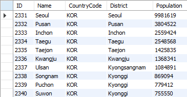 select * from city where CountryCode ="KOR" union select * from city where CountryCode ="KOR";