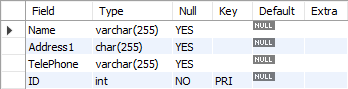 Address1의 데이터타입을 varchar(255)에서 char(255)로 변경